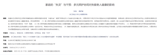 论文题目:家庭的“失灵”与干预:多元照护协同对失能老人健康的影响