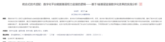 论文题目:统合式技术适配:数字化平台赋能基层权力监督的逻辑——基于J省基层监督数字化改革的实践分析