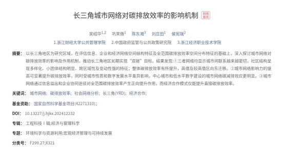 论文题目:长三角城市网络对碳排放效率的影响机制