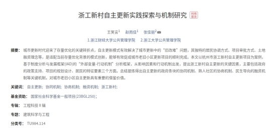 论文题目:浙工新村自主更新实践探索与机制研究