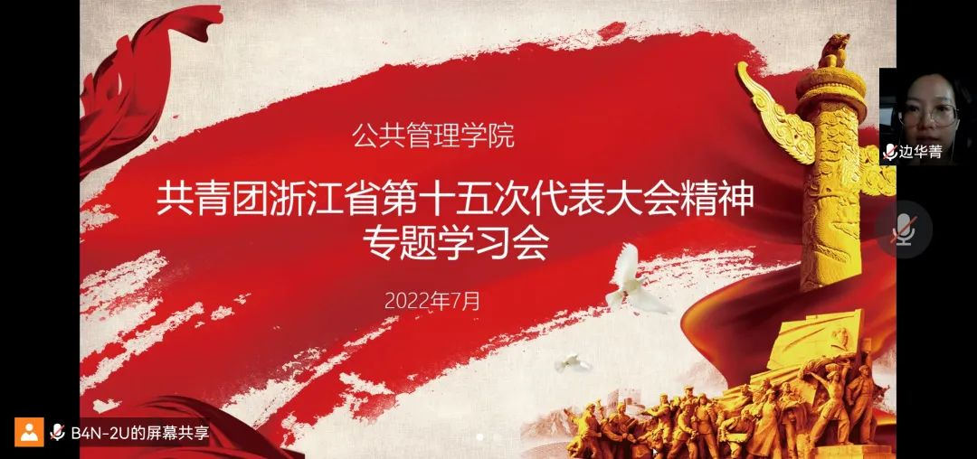 团委书记边华菁、学生会执行主席郭晓雨、理论中心组负责人谢翁珂的号召下,学院青年师生深入学习共青团浙江省第十五次代表大会精神,并依次发表了自己的心得体会。正如袁家军书记所言:“青年是浙江的希望,浙江是成就青年的沃土。希望全省广大团员青年努力成为守护‘红色根脉’、推动变革创新、展现实干担当、增进民生福祉、引领时代风尚的先锋力量。”我们青年学生要坚定理想信念,培育高尚品格,练就过硬本领,勇于创新创造,矢志艰苦奋斗,同青年同人民一道,在矢志奋斗中谱写新时代的青春之歌!