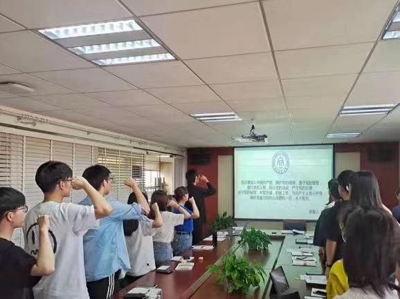 大四党员与学弟学妹们通过“互送贺卡、互寄祝福”的形式互相结对,形成“一对一”或者“二对一”的帮扶模式。看着一张张感情真挚的贺卡,党支部书记黎超表示:“希望通过这个模式可以进一步增进大家之间的感情与了解,毕业生党员要和在校党员保持密切联系,为学弟学妹们提供更多大学生活上的意见和指导,履行党员义务,发挥党员作用”。此后,党员王泽凡和张睿还就如何选择公务员考试岗位,如何准备笔试与面试等问题与大家进行了经验上的分享,王泽凡同志叮嘱大家在大四时候一定要根据自己的个人特点选择适合自己的就业方向,一定要珍惜自己的大学时光,勇敢追梦,不负韶华。随后,在曹浩杰同志的带领下,大家重温入党誓词。铿锵有力的誓词,让大家重新回顾了自己加入党组织的初心与使命,更加坚定了自己的理想信念。