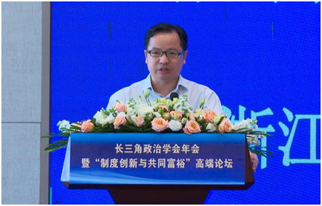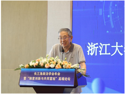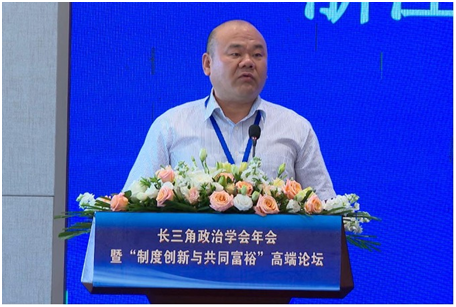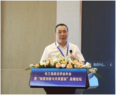 张树华代表中国政治学会对论坛的举办表示祝贺。他表示共同富裕是中国特色社会主义的重要特征,也是党和人民的不懈追求。浙江省承担了高质量发展建设共同富裕示范区的重要使命,希望长三角学界同仁共同行动起来,从制度建设与创新层面出发,为扎实推动共同富裕和长三角一体化协同发展提供高质量智力支持。