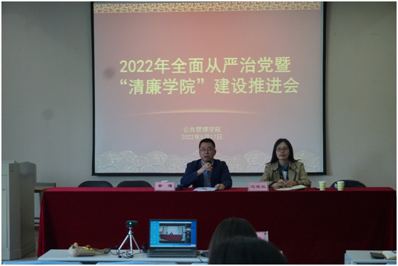 5月17日,在1号学院楼208报告厅召开2022年度全面从严治党暨“清廉学院”建设推进会,院党委书记沈晓敏主持,全体教职工参加。会议以线上线下相结合的方式召开。
