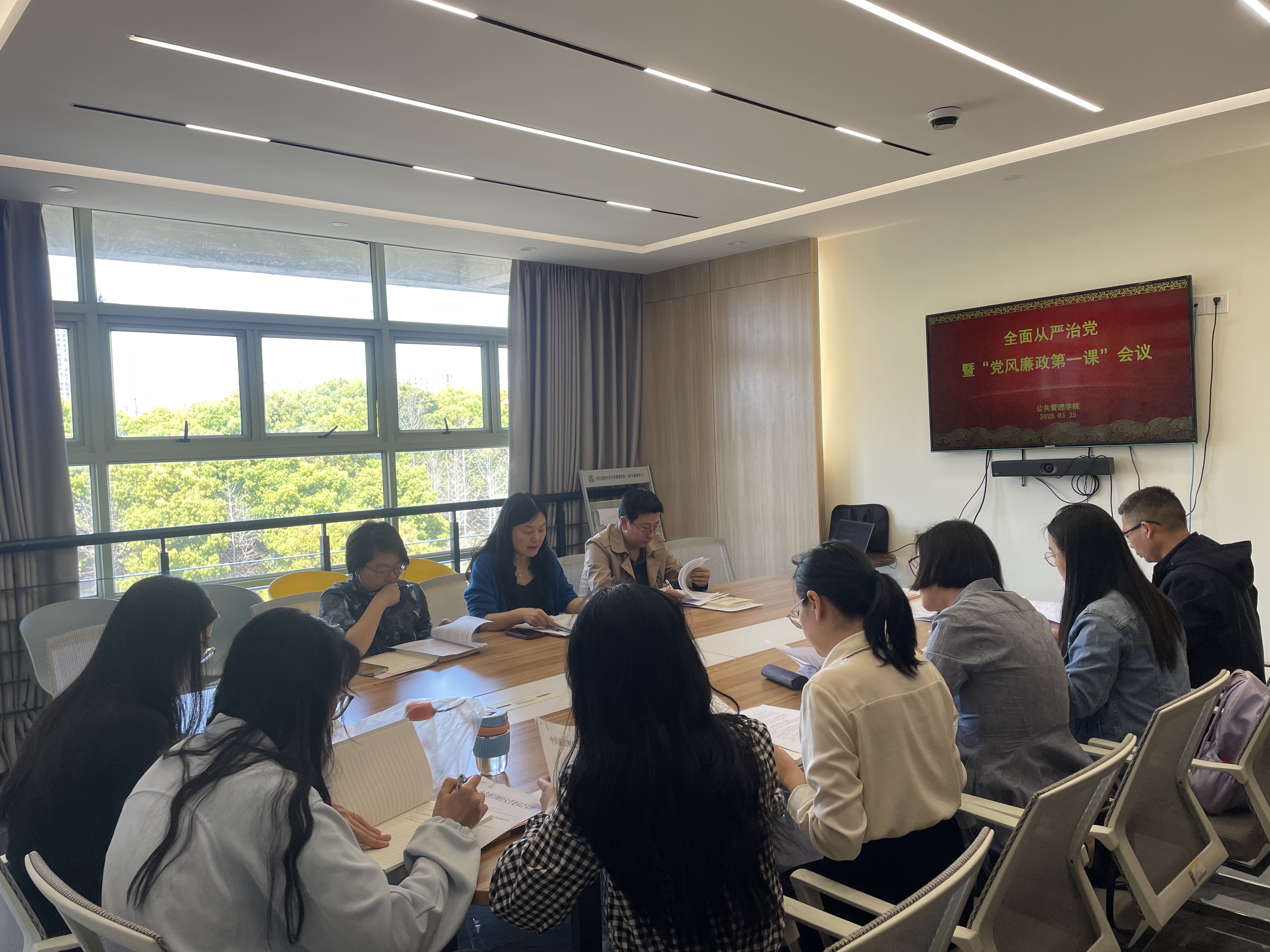 党委在学院楼522党员之家召开了全面从严治党暨“党风廉政第一课”会议。学院领导班子、学院党委委员、学院纪委委员以及各党支部书记参加会议。