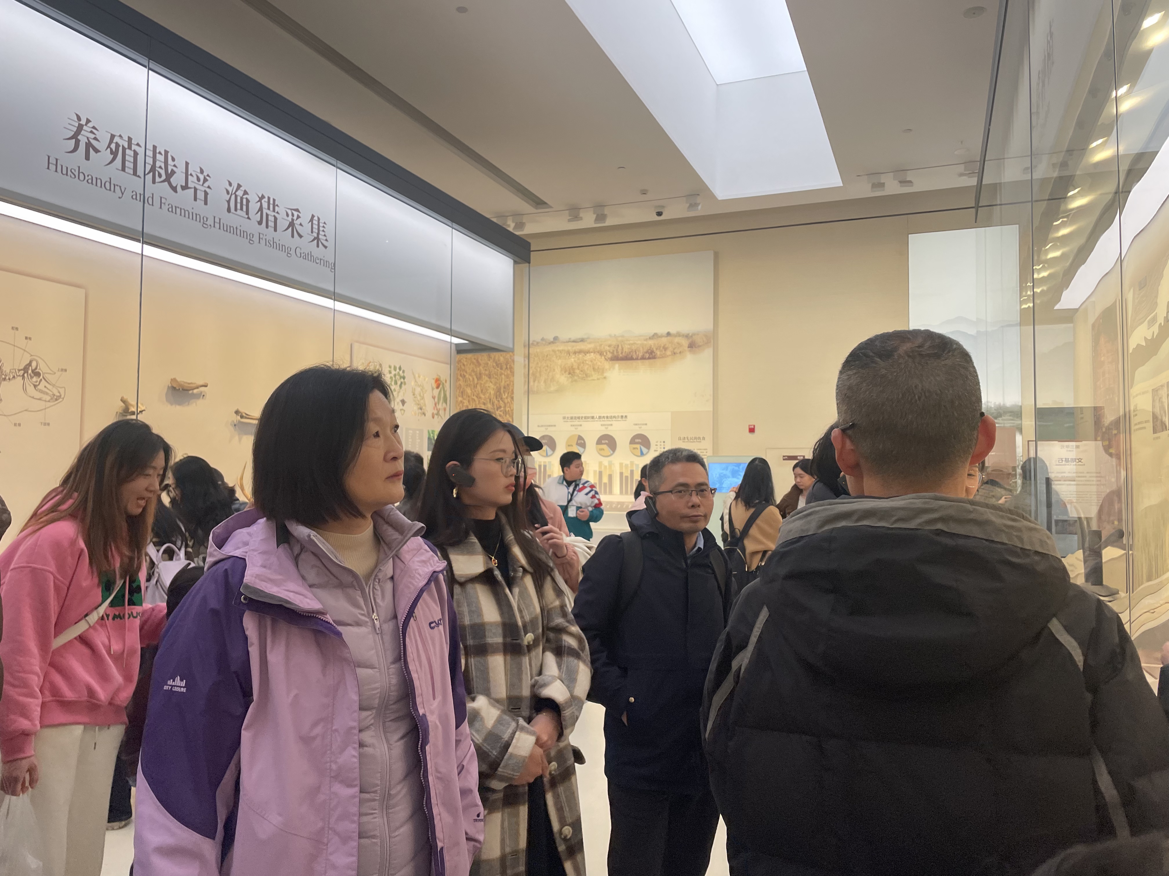 良渚博物院是展示良渚文化的重要窗口,馆内通过丰富的文物、详实的史料和现代化的展陈手段,生动再现了良渚文明的辉煌成就。在讲解员的引导下,大家依次参观了“水乡泽国”“文明圣地”“玉魂国魄”三大主题展厅,详细了解了良渚古城的考古发现、社会结构、祭祀文化以及玉器制作工艺等内容。一件件精美的玉器、一幅幅生动的场景,让大家深刻感受到良渚文明作为中华五千年文明实证的非凡意义。