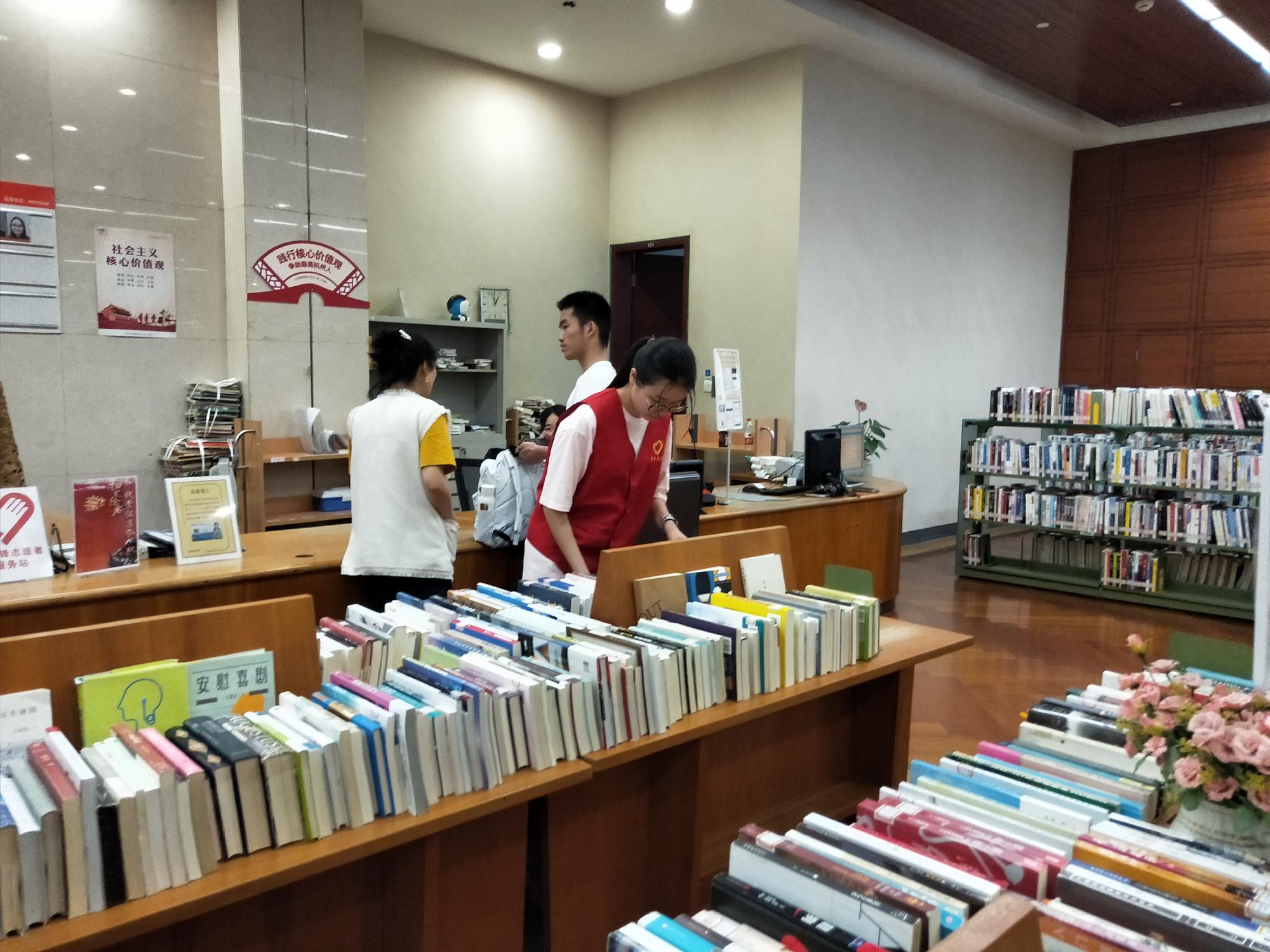 志愿者前往杭州图书馆进行志愿活动,为前来借阅图书的读者们带去了便利且亲民的优质服务。