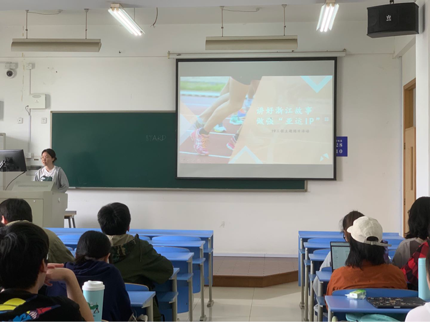 19工程团支部举行了以“讲好浙江故事 做强‘亚运IP’”为主题的团日活动,带领同学们认识亚运、了解亚运。
