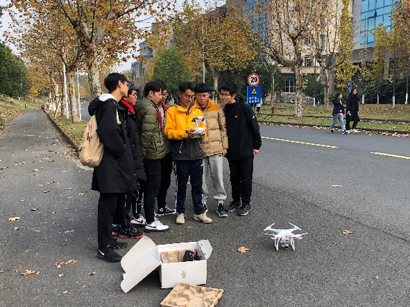 近日,浙财大黑人av 城乡规划专业的入党积极分子魏自尊作为党员“七号室友”带领他负责的502新生宿舍成员在校园内使用无人机进行绘图测量。