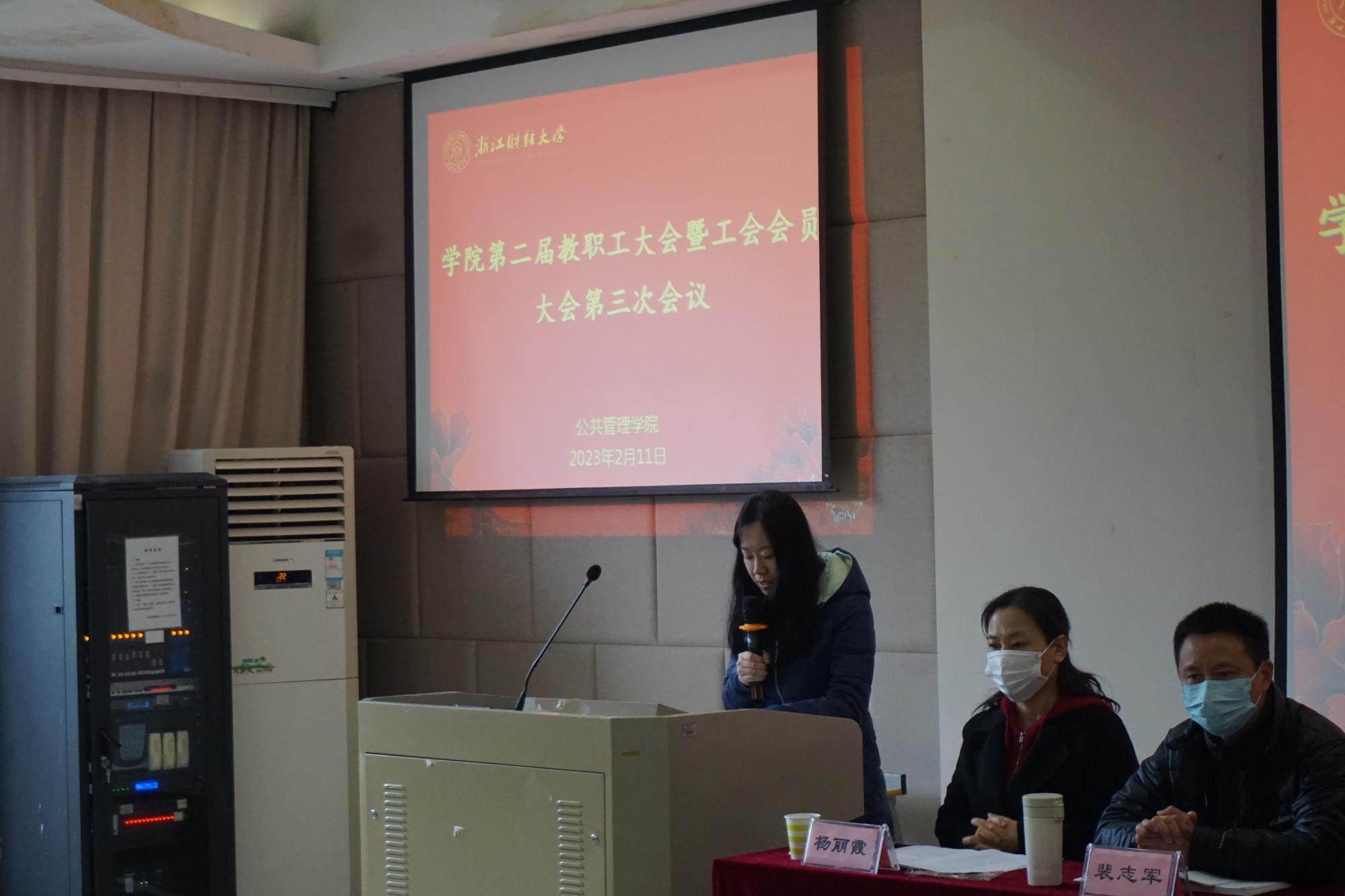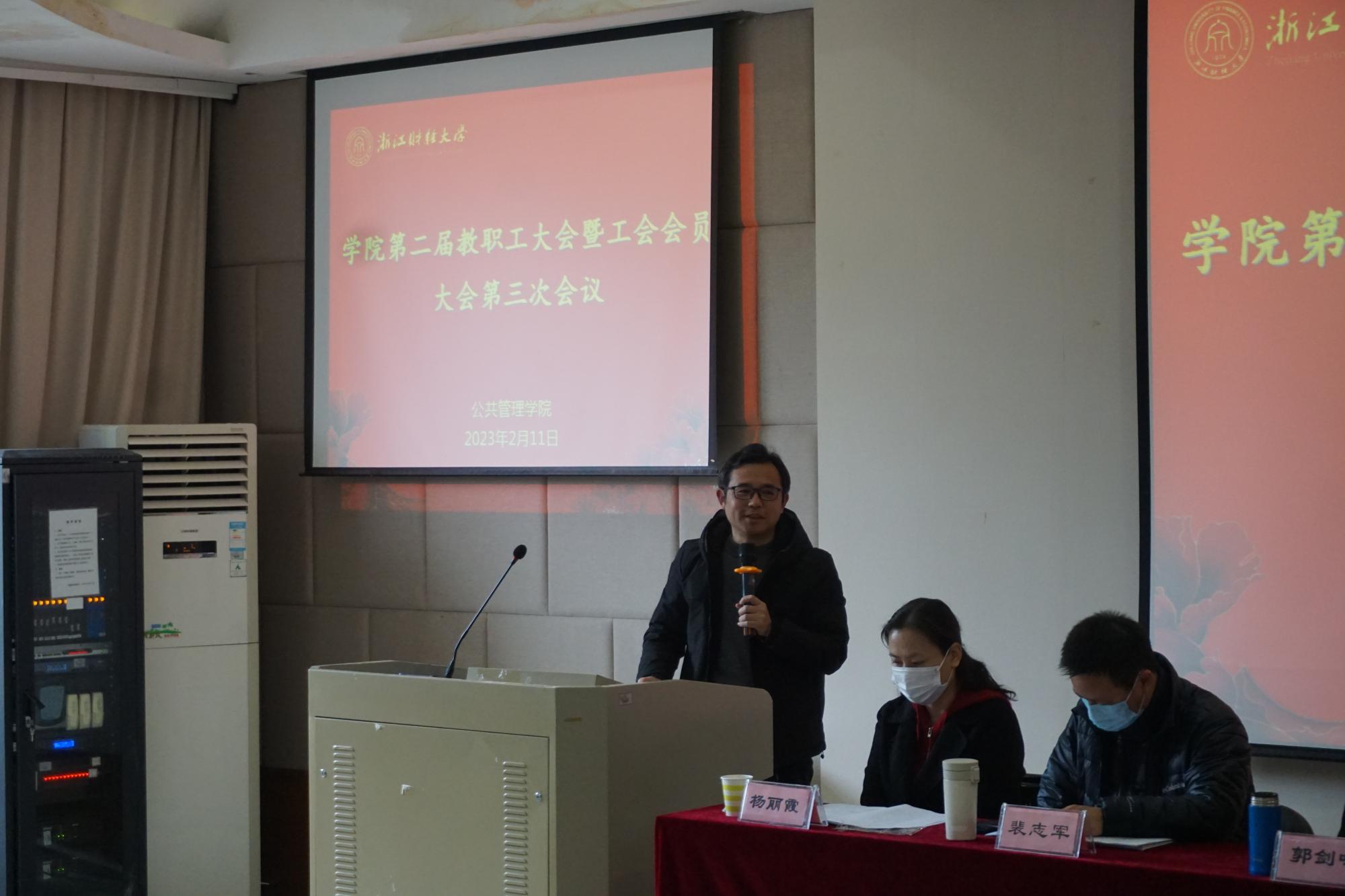 随后,大会听取并审议通过了学院分工会主席钟伟军作的《2022年学院分工会工作报告》、《2022年学院分工会财务报告》;学院分工会副主席郭敏作的关于二届二次教职工大会提案落实情况的说明和关于二届三次教职工大会提案征集情况的说明。
