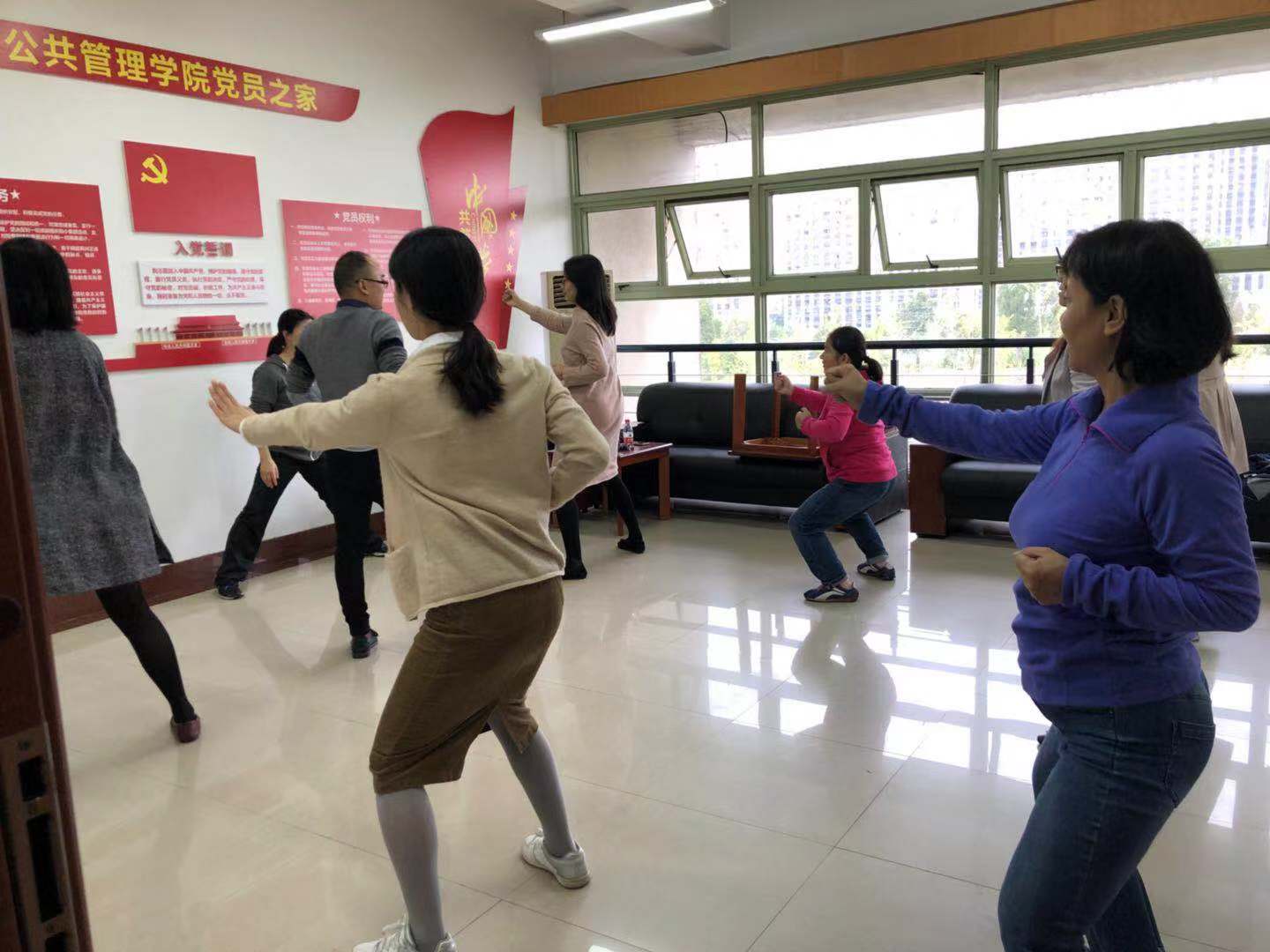 为推进全面健身,丰富教职工文化生活,增强凝聚力,促进校园和谐建设,养成重视和热爱体育运动,加强身体锻炼的健康意识。12月6日,学院工会组织全体教职工进行八段锦健身活动。此次活动特地邀请了体军部专业教师为大家现场教学。