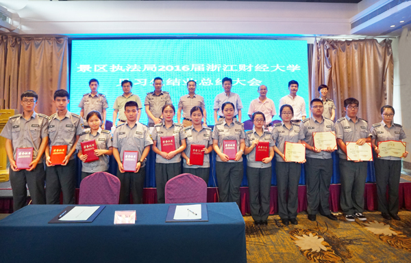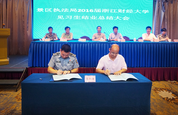 7月28日下午,我院与杭州西湖风景名胜区城市管理行政执法局共同举行结业总结大会。双方就服务保障G20城市管理见习班进行总结表彰,并签订深化合作协议。副校长励如孟,西湖风景名胜区党委委员裘统,景区人社局、执法局及我院相关领导,景区执法局城管中层和执法队员代表,学院教师代表及城管见习班全体学生参加活动。