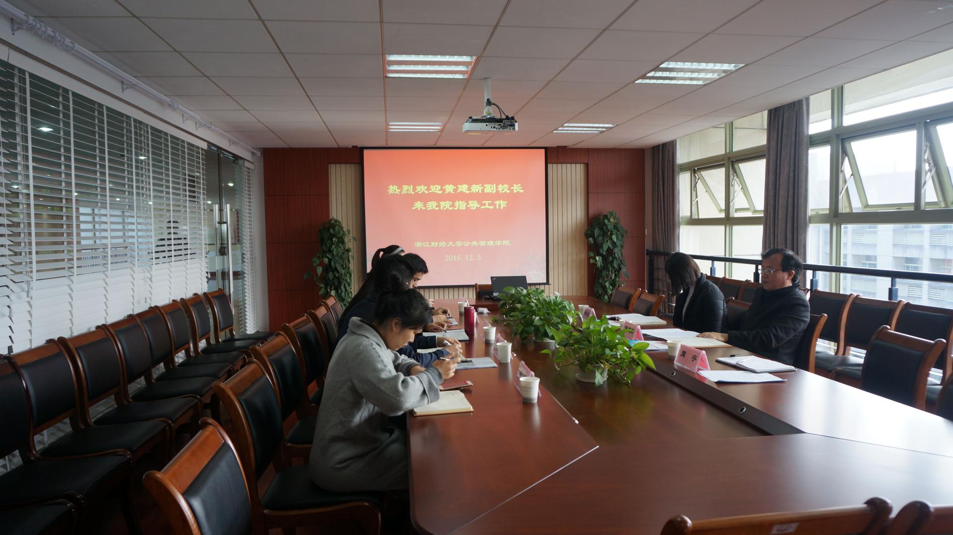 沈晓敏书记代表学院感谢黄建新副校长来院指导工作,并就学生工作相关问题交流了看法。程晓东副书记介绍了学院学生工作基本情况,并着重从学风建设、考研与就业、困难学生管理服务、辅导员队伍建设等方面谈了工作思路和举措,分析了存在的困难和问题。