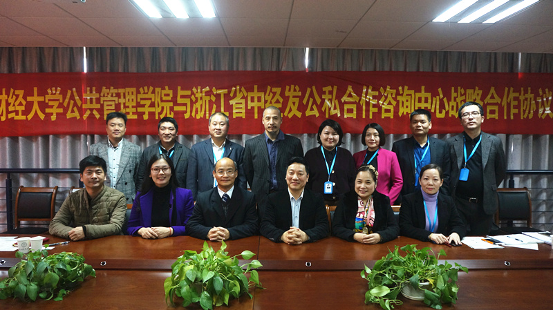 与浙江省中经发公私合作咨询中心战略合作签约仪式在1号学院楼517C会议室举行。中经发主任王前利、院长郭剑鸣、党委书记沈晓敏、党委副书记程晓东等双方主要领导出席了本次活动。仪式由沈晓敏主持。