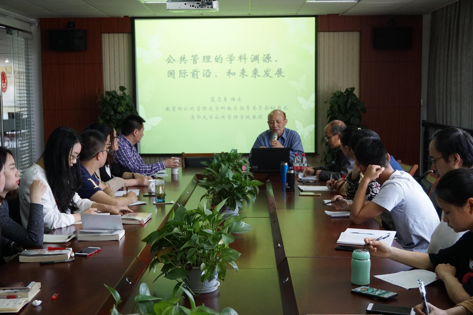作了“公共管理的学科渊源与未来发展”的学术报告。报告由院长郭剑鸣教授主持。