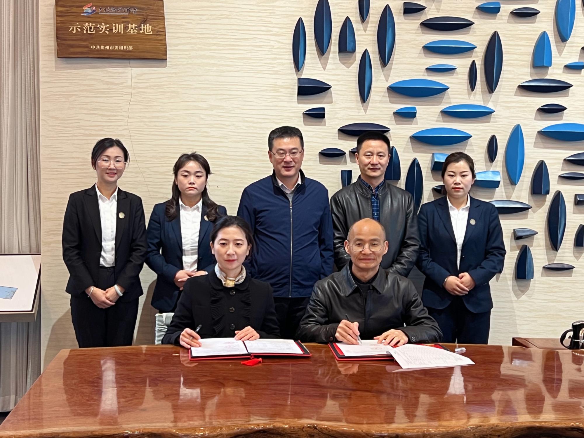 在龙游县广和雷迪森怿曼龙山运动小镇建立浙南培训实践教育基地。校党委委员、副校长徐晓东、院长郭剑鸣等人出席签约仪式。