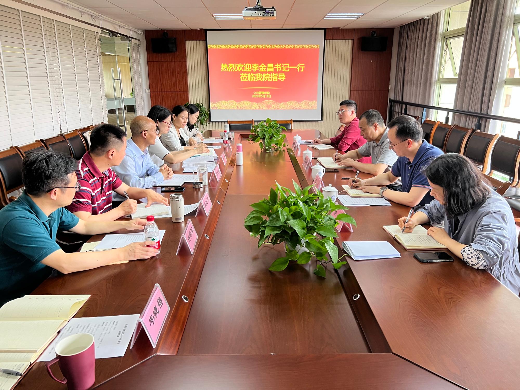 学院院长郭剑鸣、院党委书记沈晓敏向李金昌书记一行汇报了学院围绕申博这一重大攻坚目标,推进人才队伍建设相关情况,重点介绍了高层次人才引育、团队建设以及服务人才发展的制度举措等。学院副院长裴志军、杨丽霞及其他教师代表围绕人才需求、学科团队、教学建设等介绍有关情况。与会人员围绕调研主题进行了深入交流。