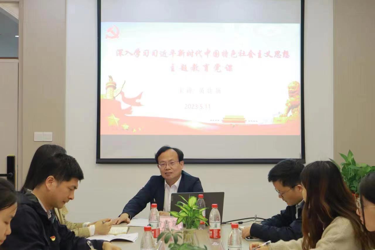 黄建新副书记围绕“深入学习贯彻习近平新时代中国特色社会主义思想”这一主题,以开展主题教育学思想、强党性和勉励青年大学生重实践、建新功这两大方面进行讲授。从党的二十大报告中习近平总书记强调马克思主义是立党立国、兴党兴国的根本指导思想出发,讲述了“中国共产党为什么能”“中国特色社会主义为什么好”“马克思主义为什么行”。