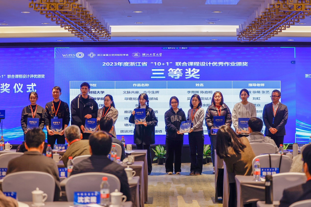 论坛由14名教学名师、青年人才围绕国土空间规划教育教学、人才培养等进行交流研讨,并就2023年度浙江省“10+1”联合课程设计(塘栖基地)教学成果汇评联展作品进行评选。学院郭敏、徐萌、张艺老师指导的详细规划课程设计作品《文脉共廊,古今生辉》和《“桥”跃“景”上·古韵宅生》分别获得三等奖和佳作奖。