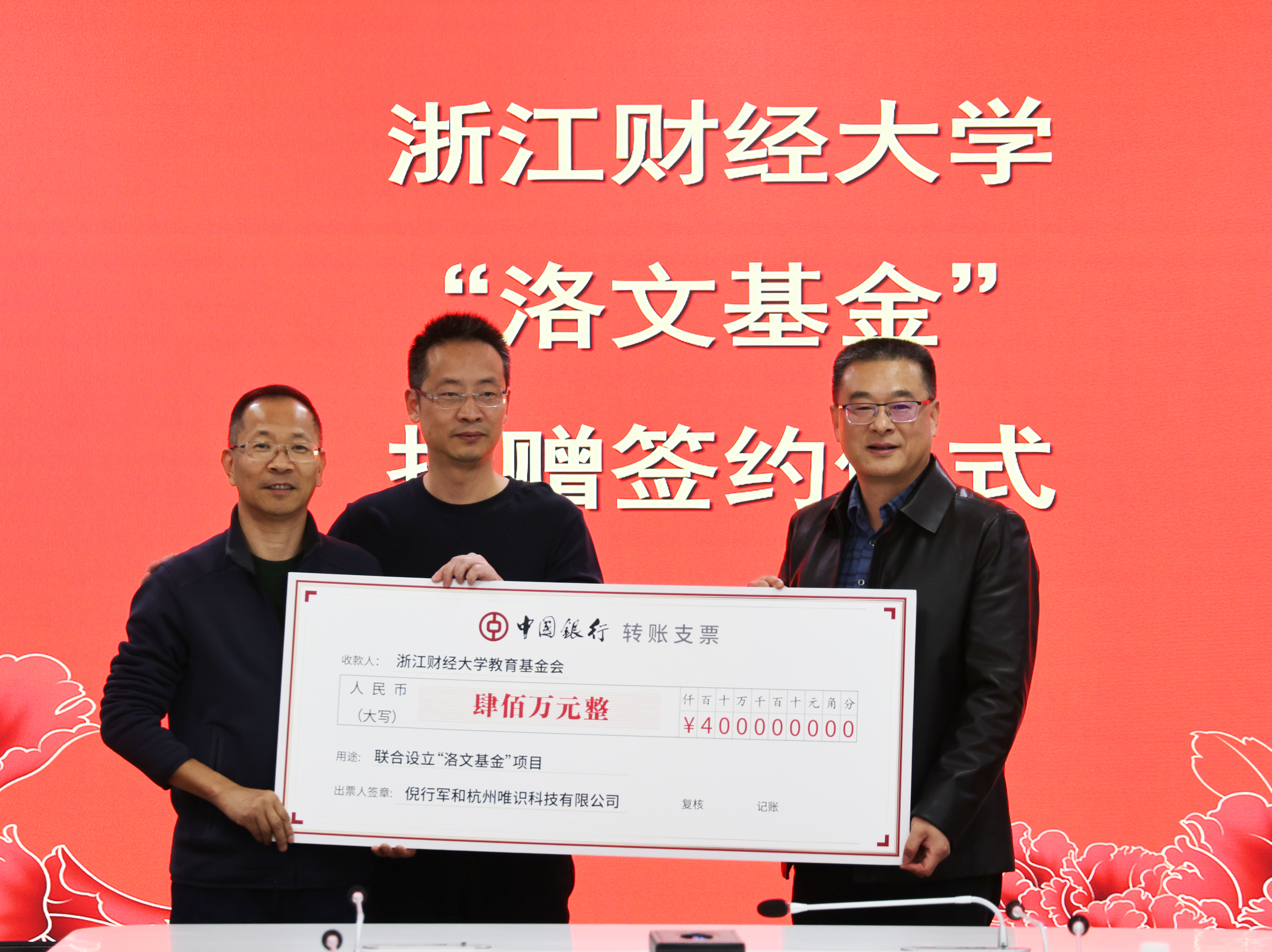 12月12日,“洛文基金”捐赠签约暨校史馆揭牌仪式在学校下沙校区举行。校党委副书记徐晓东、程爽,2000届会计专业校友、蚂蚁集团资深副总裁、蚂蚁集团技术战略委员会主席倪行军,2001届社会保障专业校友、杭州唯识科技有限公司CEO叶进武,2003届市场营销专业校友、浙江省盈盈公益基金会理事长俞燕平等出席仪式。