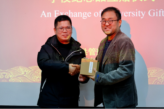 黄志岭副院长向首尔市立大学赠送我校纪念品