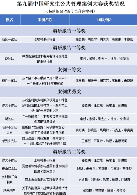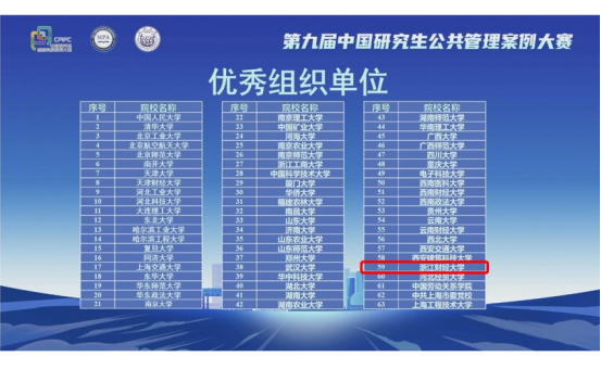 日前,第九届中国研究生公共管理案例大赛决赛在同济大学落下帷幕,经过激烈角逐,学院共获得一等奖1项、二等奖1项、三等奖5项、优秀奖4项,并连续六年荣膺优秀组织奖,获奖层次和数量位居省属高校榜首、全国财经类高校前列。