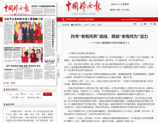 托牢“老有所养”底线,释放“老有所为”活力——“十五五”规划建议专家系列解读之七//paper.cnwomen.com.cn/zgfnb/html/2025-11/13/content_1_11802.htm