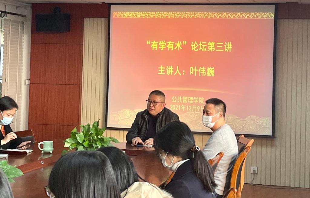 举办了“有学有术”第三期论坛,叶伟巍教授为本次论坛的主讲人,各专业教师参与论坛。本次论坛的主题是“申报国家社科自科项目经验分享”,旨在丰富教师学术经验,提高学院科研创新水平。