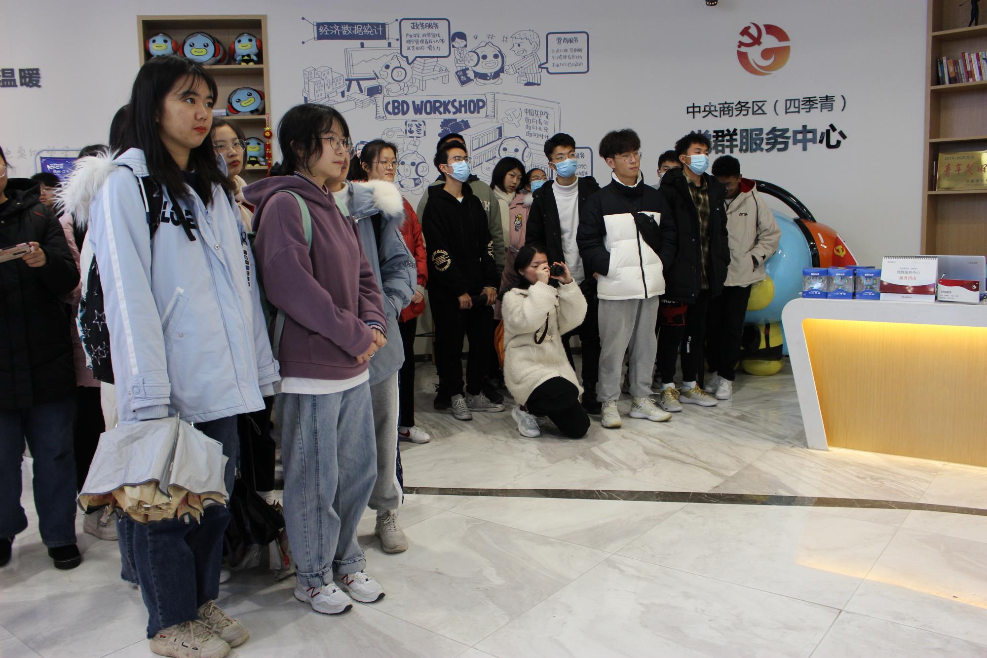师生有序参观了该街道大学生见习基地,了解了该见习基地建设情况和面向高校大学生的岗位需求,对当前大学生就业创业形势和相关扶持政策等有了更全面的认识。