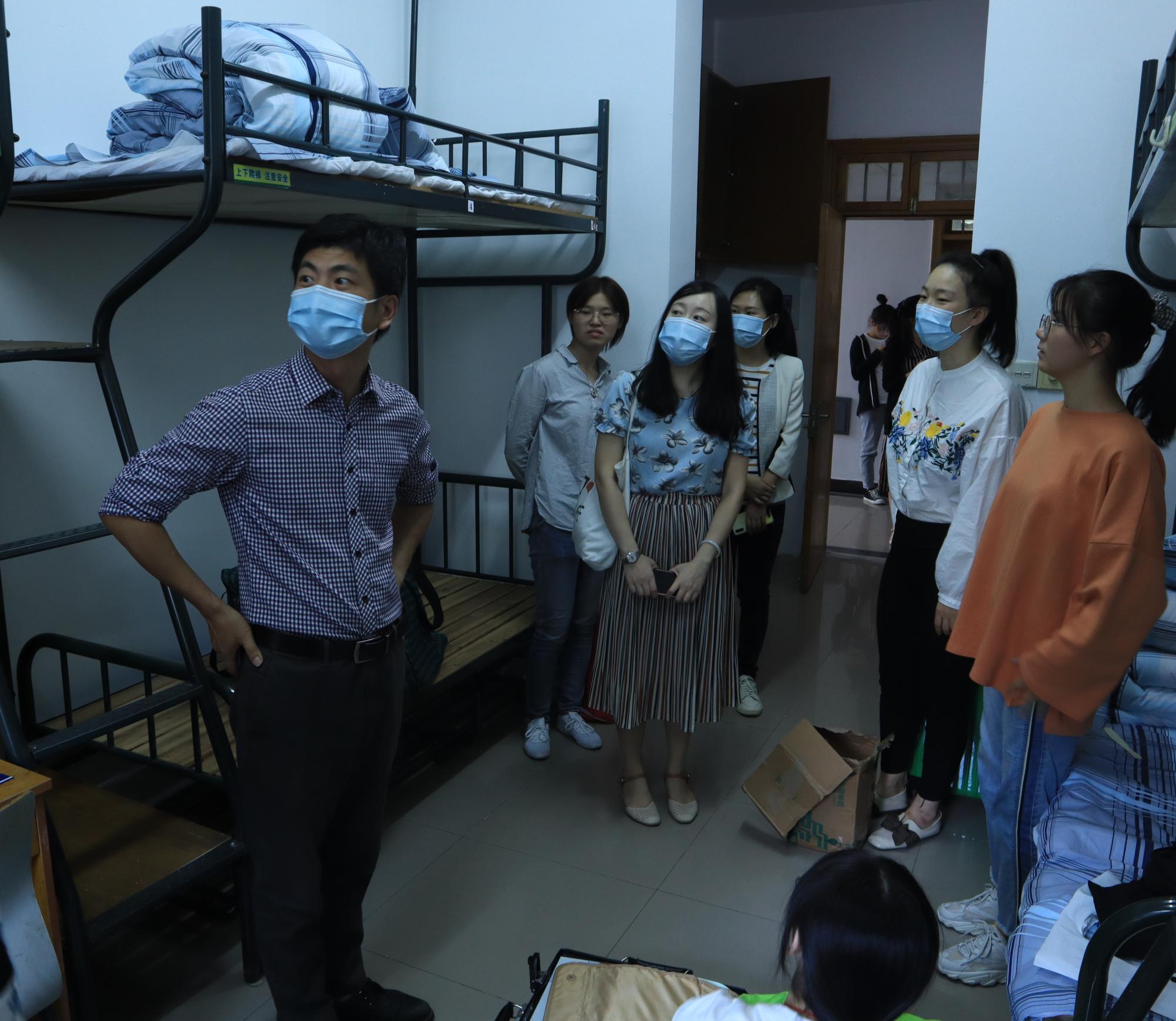 学院党委副书记程晓东、副院长杨丽霞等学院领导在迎新现场详细了解报到情况,向新生表示欢迎,对工作人员进行了慰问。学院领导在班主任、辅导员的陪同下走进了2020级新生寝室,与新生深入交流,询问家庭情况,畅谈大学计划,并叮嘱各位新生疫情期间要注意做好个人防护,尽快投入到大学的学习生活中。