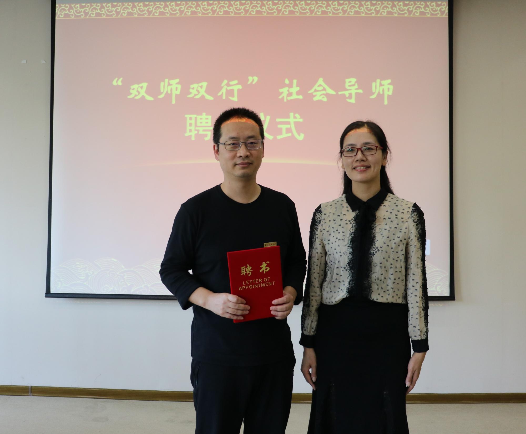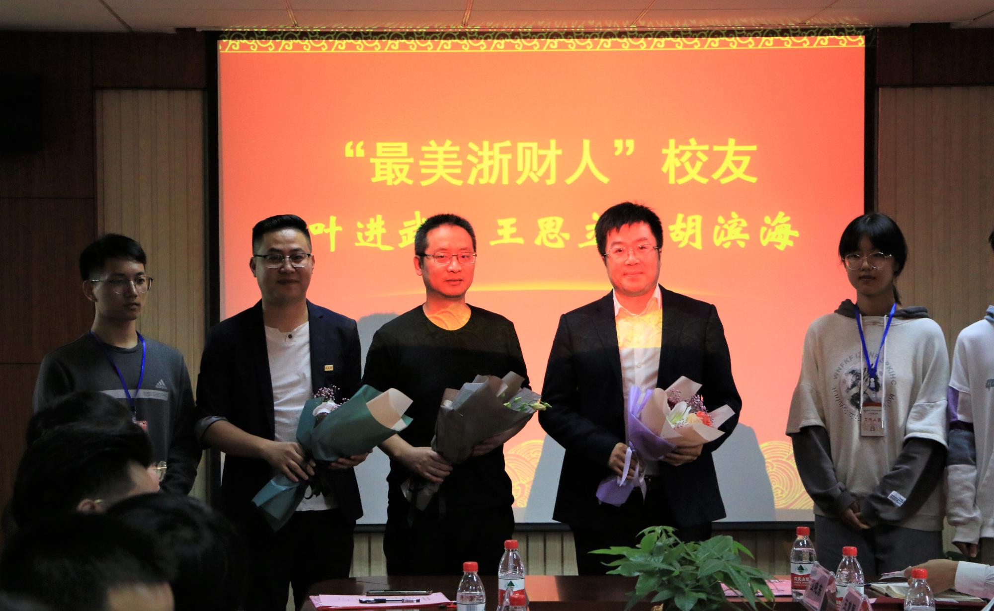 当天下午,学院举行“双师双行——榜样力量”杰出校友叶进武分享会。“最美浙财人”、01届社保校友叶进武结合个人经历作了回顾和介绍,并与现场在校生互动交流。沈晓敏书记代表学院向叶进武校友颁发“社会导师”聘书。