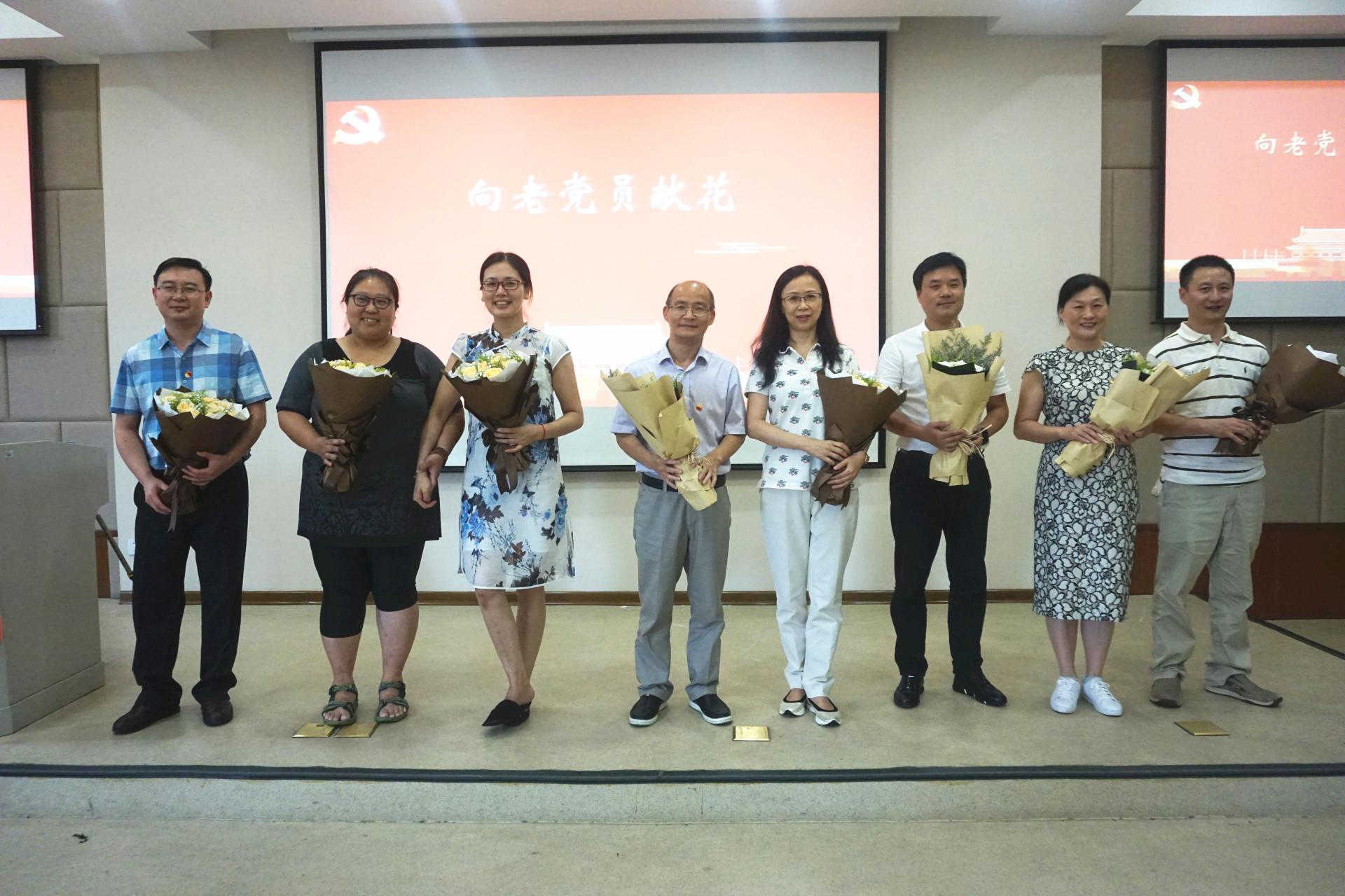 现场还举行了教工党支部书记向党员代表赠送政治生日贺卡仪式,各支部党员教师代表满怀着激动的心情依次发言表达入党初心。为传承老同志优良作风,由学生党员向党龄20年及以上的老党员献花,表达致敬。入党申请人卢怡老师还现场向党组织提交了入党申请书。党日活动在重温入党誓词中落下帷幕,全体教工党员表达不忘初心、牢记使命的庄严承诺。