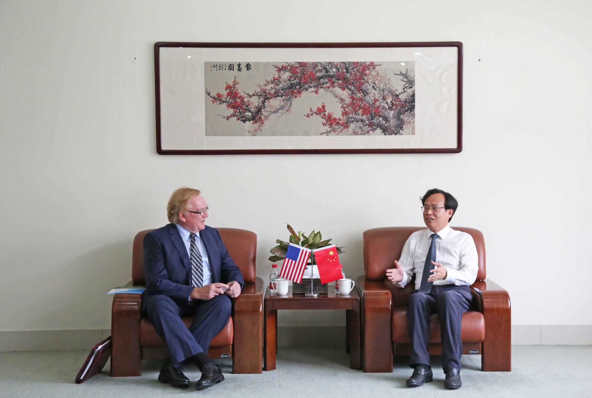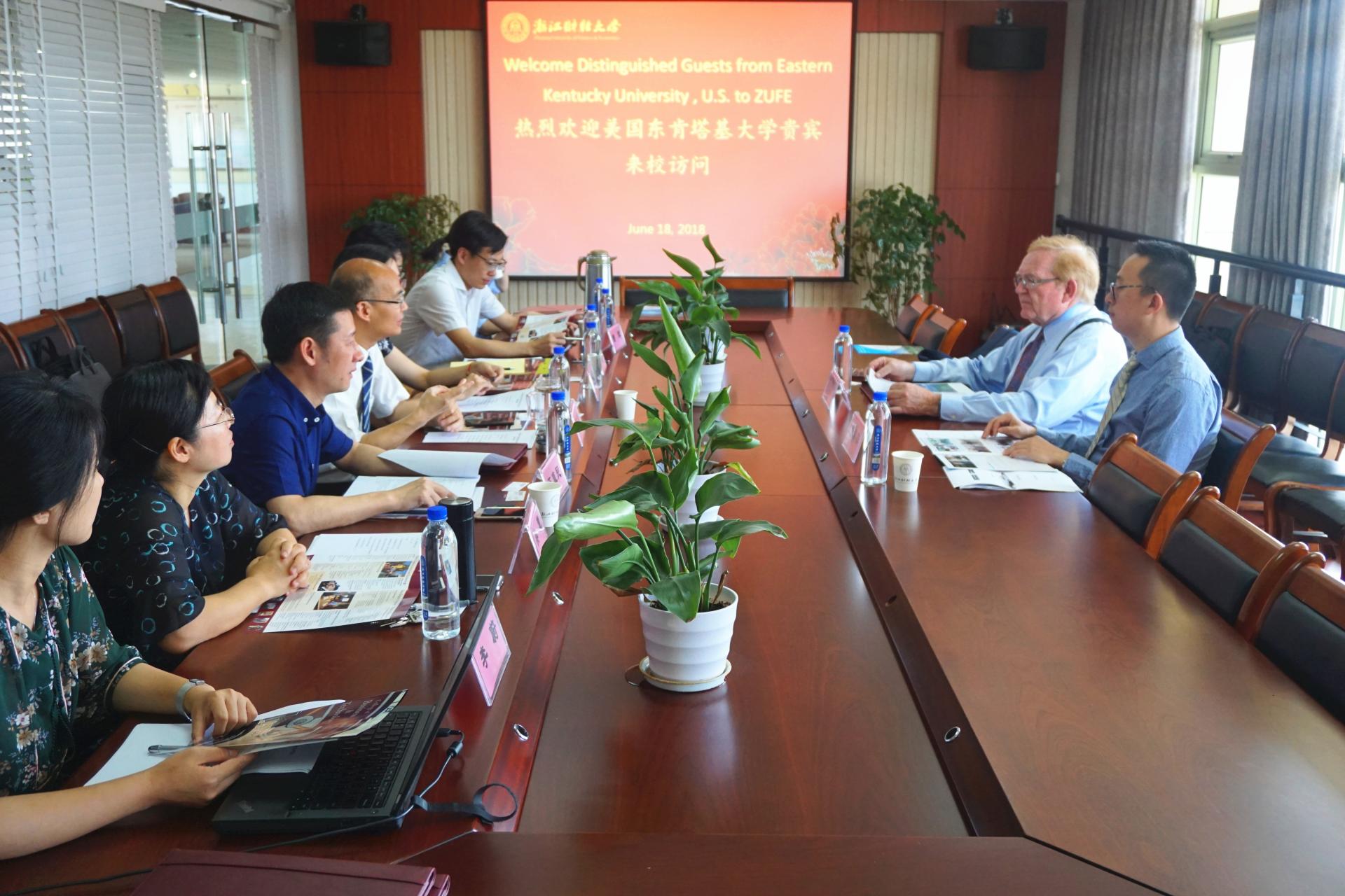6月18日至19日,美国东肯塔基大学商务与科技学院院长托马斯·埃瑞克森教授、副教授张承弈一行来校洽谈中外合作办学事宜,并受到副校长黄建新的亲切接见。院长郭剑鸣、院党委书记沈晓敏、副院长王直民及国际处和工程系的相关负责人参加会谈。