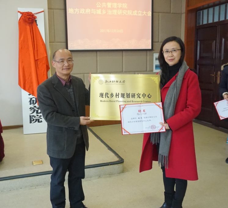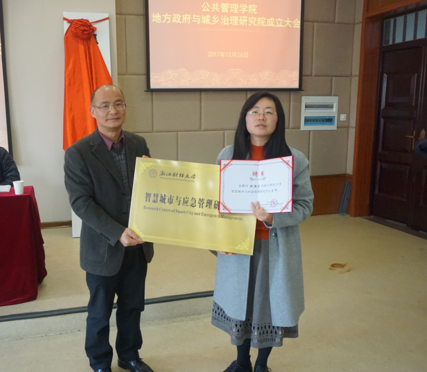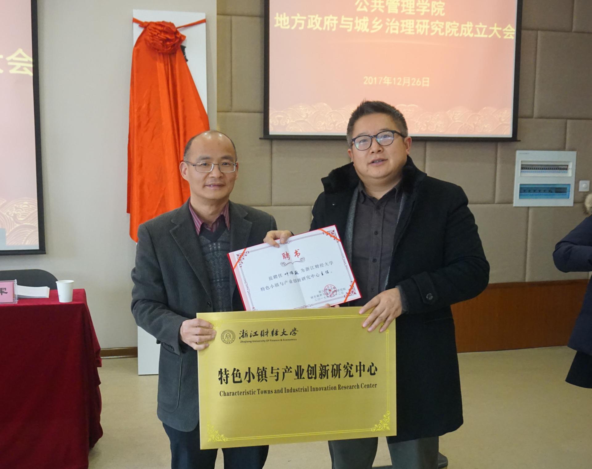 研究院下设六个研究中心,分别为:“党风廉政研究与评价中心”、“城市治理创新研究中心”、“公益彩票研究中心”、“特色小镇与产业创新研究中心”、“智慧城市与应急管理研究中心”、“现代乡村规划研究中心”。会上,郭院长分别为6位研究中心主任:裴志军、杨雪锋、戴卫东、叶伟巍、鲍海君、魏遐颁发聘书。6位中心主任共同为研究院揭牌。