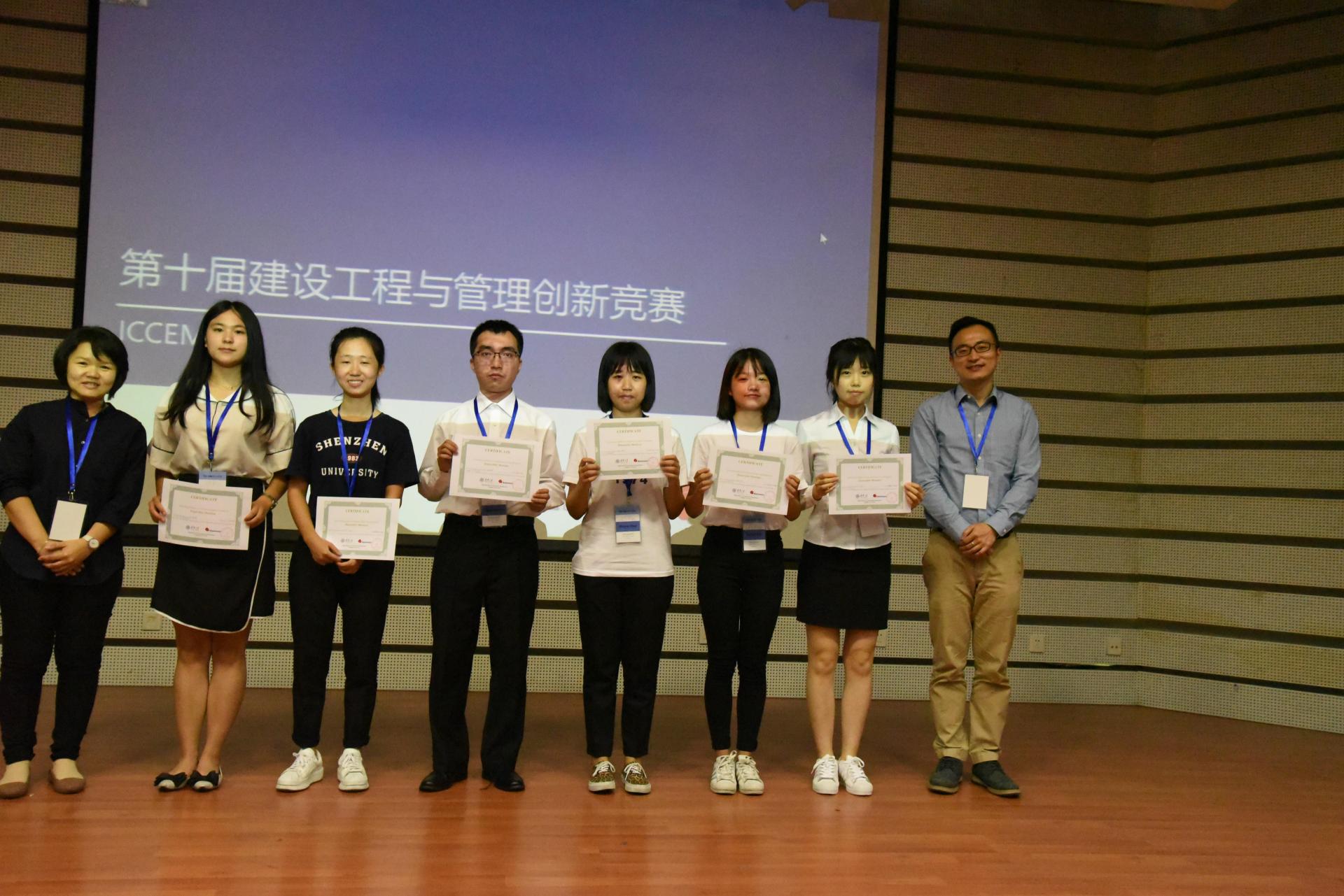 工程管理专业15级本科生庄珍珍、李喆、杨成武,及16级本科生李景薇、卢杭、郁康杰、章艺也两支队伍也参与了初赛,并获得了优秀参与奖。