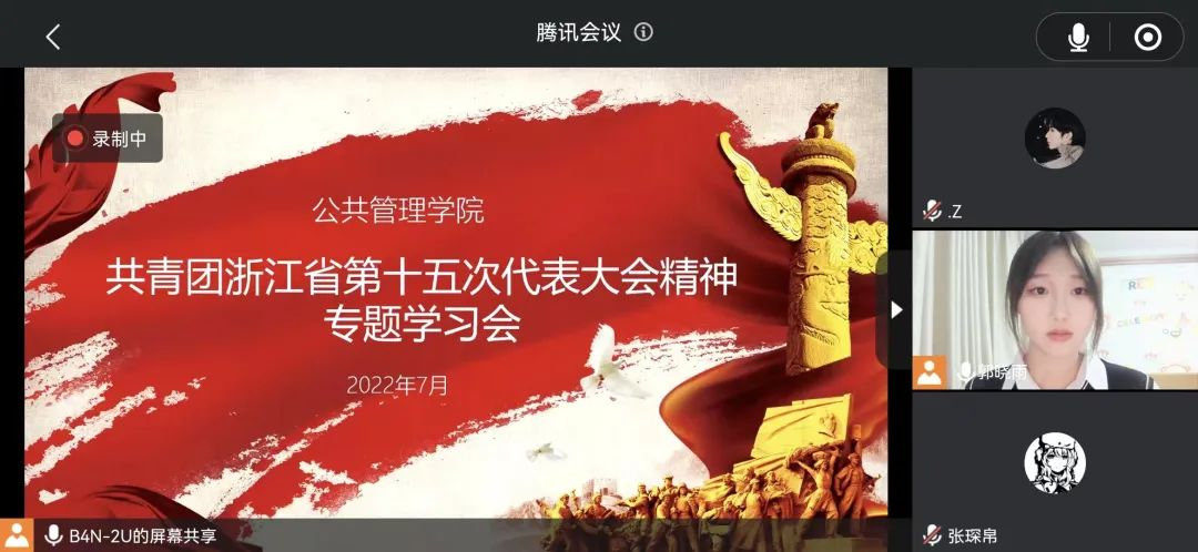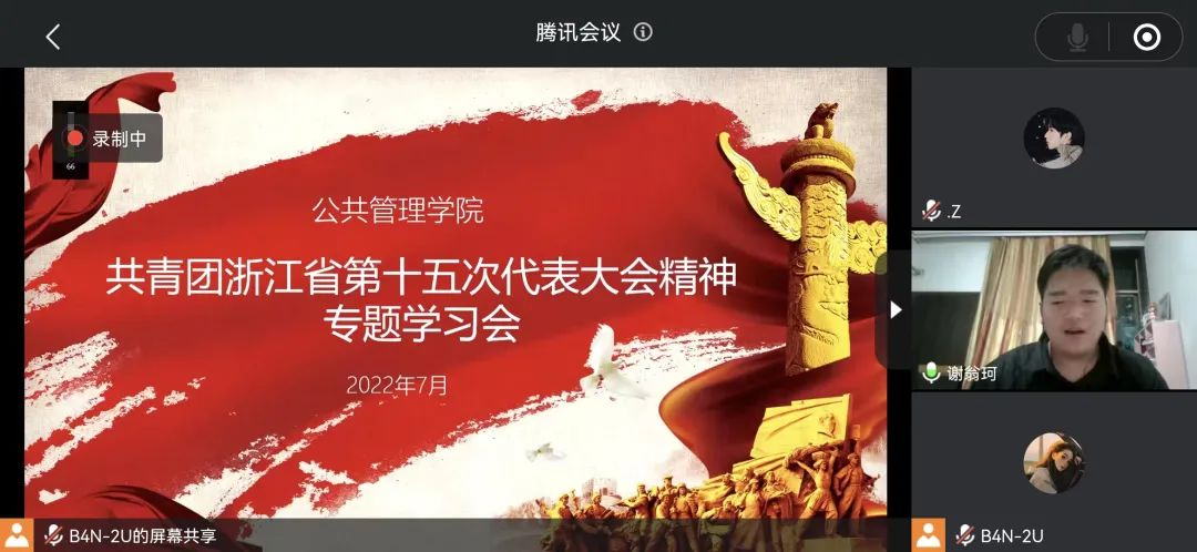 团委书记边华菁、学生会执行主席郭晓雨、理论中心组负责人谢翁珂的号召下,学院青年师生深入学习共青团浙江省第十五次代表大会精神,并依次发表了自己的心得体会。
