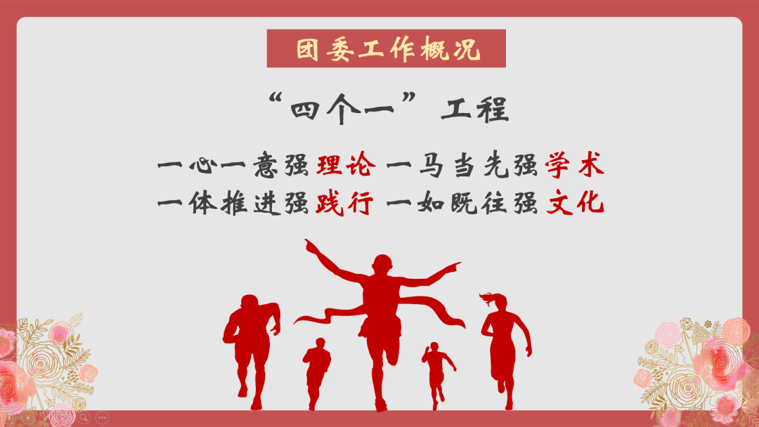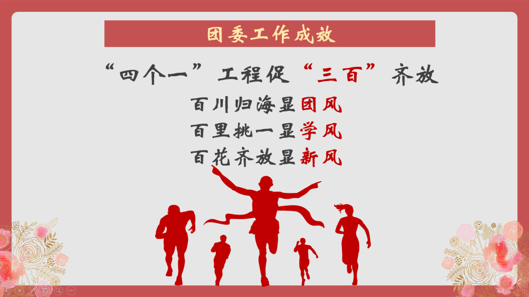 学院团委书记边华菁以“聚青年众志,汇青春力量”为主题,以“四个一”工程促“三百”齐放为基点,讲述了黑人av 2021年团委工作的基本情况以及主要成效,充分展示了黑人av 团委风采。